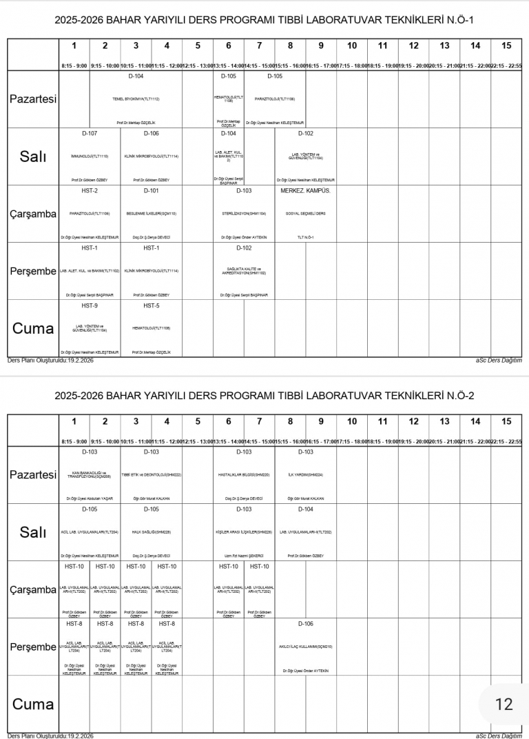 2025-2026 Eğitim Öğretim Yılı Bahar Dönemi Ders Programları